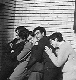 In front of Alborz highschool's main entrance, right to left: Hossein Ansari, Fariborz Eshragh, Ali Parsa, Amir Yousefi, Kambiz Kashani. 1969.